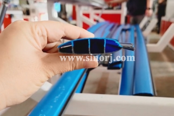 PC共擠型材生產(chǎn)線工廠內(nèi)試機進行中